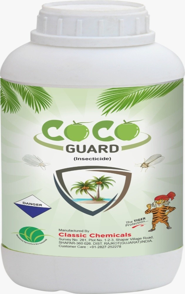 Pryiproxyfen in Coco Guard, being an IGR. It controls all three stages of whitefly. It prevents hatching of eggs, inhibits metamorphosis of Nymph to Adult and causes sterility in adults.